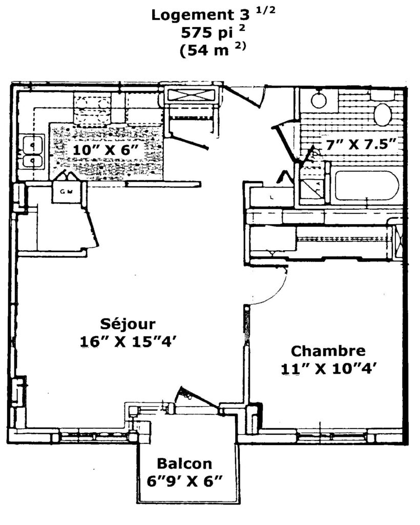 L’illustration est celle d’un de nos logements les plus courants. Les autres sont équivalents en grandeurs et équipements, mais ils sont disposés différemment.